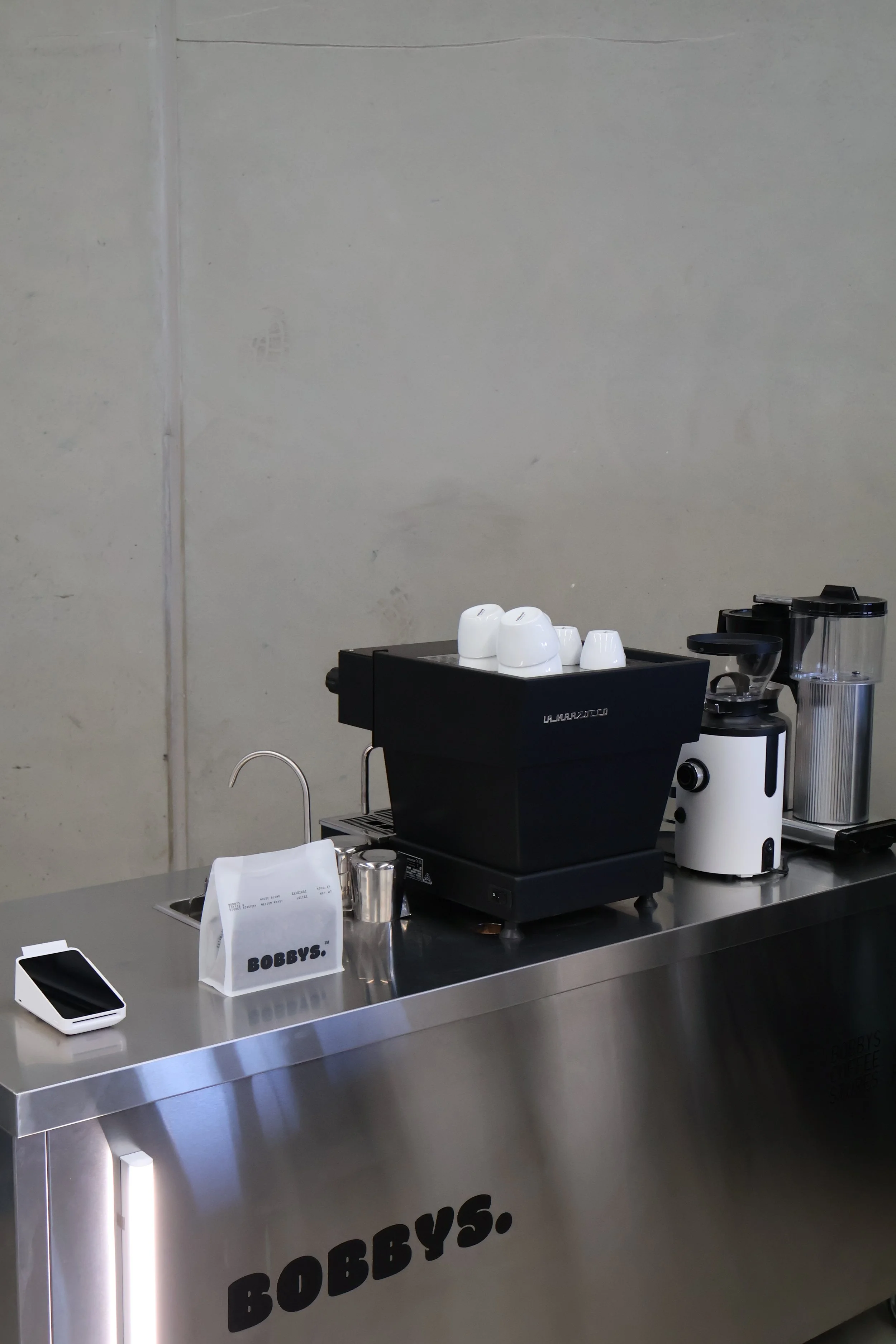 TWO LA MARZOCCO LINEA MINIS SIT ATOP A FULLY STAINLESS-STEEL BENCH — DESIGNED TO GO ANYWHERE, WHILE STILL DELIVERING A TRULY PREMIUM EXPERIENCE.